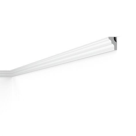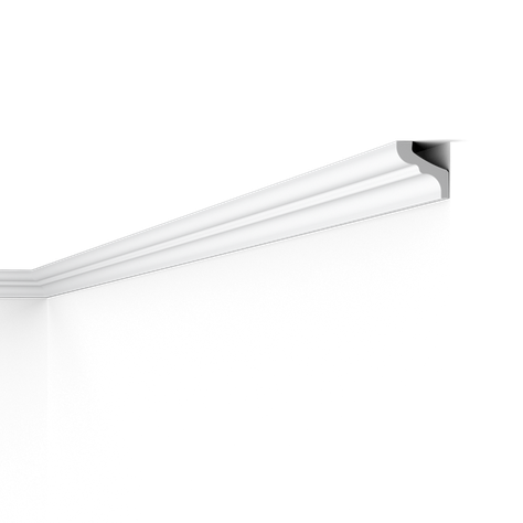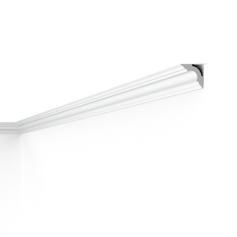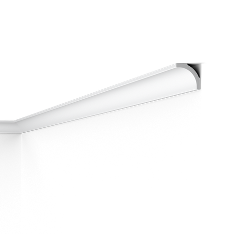 Cornices provide an elegant transition between wall and ceiling, concealing architectural joins while adding refined character to any interior. Our collection comprises over 60 profiles across a variety of materials and scales—from sleek contemporary designs to richly detailed classical motifs.